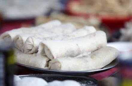 稔山薄饼是广东省惠州市惠东县稔山镇的特色传统小吃,以皮薄馅多、香甜不腻为特点,常见于当地市场和传统节日中。薄饼采用传统手工制作,面皮薄如蝉翼,馅料包含红糖、椰蓉、花生、肉松、沙琪玛等甜味食材,口感丰富且清甜不黏牙。制作时将面团在锅中快速旋转成圆膜后包裹馅料,现做现卖。