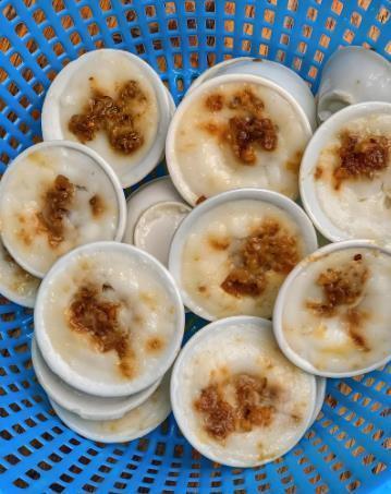 惠东稔山砵仔粄是广东惠东地区的传统咸味糕点,以梅菜瘦肉为馅料,用米浆蒸制而成。其特点是馅料沉底,表面素白,食用时需用竹签沿边缘旋转刮开后蘸豉油或辣椒酱调味。以梅菜、瘦肉、葱头、胡椒等剁碎混合,肉馅鲜香浓郁。与惠东其他地区的粄类小吃不同,稔山版本更突出咸味,常作为下午茶或街头小吃。通常搭配秘制甜酱油或紫金辣椒酱,可按个人口味调整。