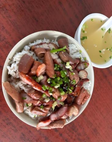 稔山叉烧饭是广东省惠州市稔山镇的特色美食,以传统炭火烧烤工艺制作,搭配柠檬酱调味,肉质脆香肥瘦适中,米饭吸收叉烧汁香浓郁。选用半肥瘦叉烧,搭配卤味和烧肠等食材。采用炭火烧烤,使肉质外脆里嫩,充分吸收炭火香气。柠檬酱酸甜提鲜,平衡油腻感,形成独特风味。